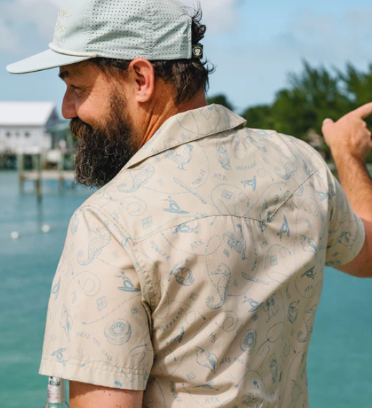 Our H Bar B Snapshirt is one of our most popular releases every season because of its glorious pearl snaps and timeless good looks. It is THE new classic pearl snap shortsleeve. We twist it up each season with new prints, patterns and textures with our HB original sunglass cleaning microfiber at the hem. There’s a whole stampede of imitators out there trying to get in the pasture with their own version of this shirt. Choose your horse wisely and make sure it’s branded H Bar B.