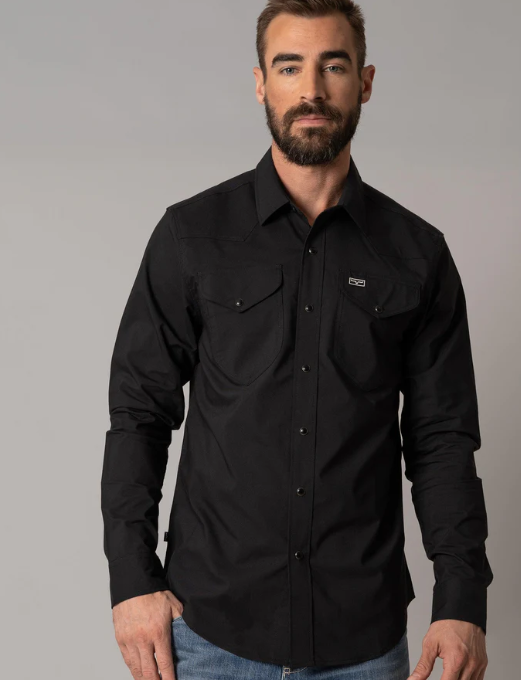 Kimes Ranch Men's Blackout Pearl Snap Dress Shirt