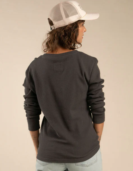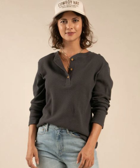 The Maven is our take on the classic henley fit in a custom waffle. Fit to be easy going and flattering, this staple is good for layering or making a simple statement piece.