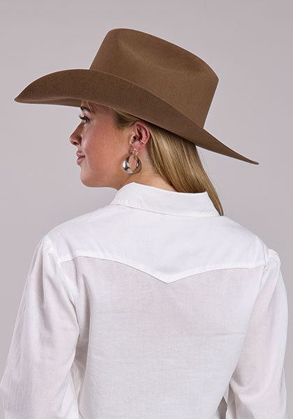 Women's Lt. Cream Cotton Long Sleeve Western Blouse * Cropped Length * 1 Pt Front & Back Yokes * Smile Pockets With Arrow Points * Button Closure