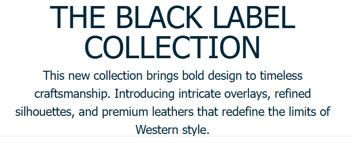 Bench made, Black Label collection boot. This new collection brings bold design to timeless craftsmanship. Introducing intricate overlays, refined silhouettes, and premium leathers that redefine the limits of Western style.