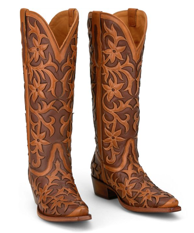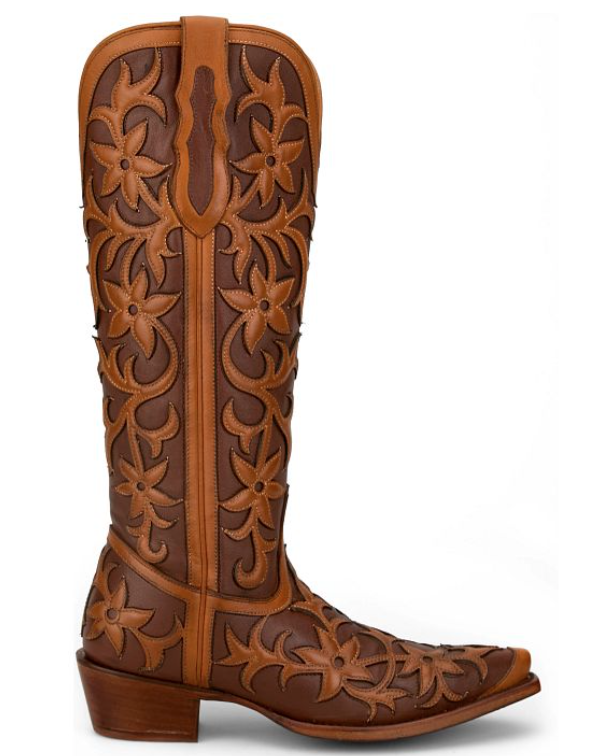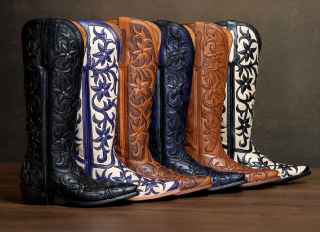Step into standout sophistication with the Camila. This tall women’s fashion boot captures the artistry of Western tradition with intricate floral overlays that create stunning depth and contrast. Crafted from premium leather and finished with a classic snip toe and cowgirl heel, it’s a show stopping design from the new Black Label Collection—where heritage meets high style.